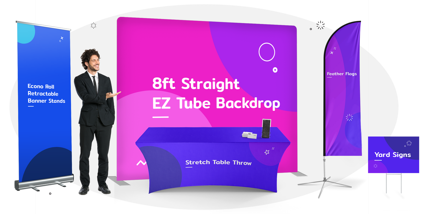 Again, they can be used outdoors and indoors. There are various constructions. For instance, you can choose a retractable one, which is compact when fully assembled and can be easily transported at any moment. Also, you can use a hanging banner, which should be installed into rigid frames or stationary platforms. The quote of a banner includes the expenses on the frame, canvas, print services, ink, and design of the graphics.
